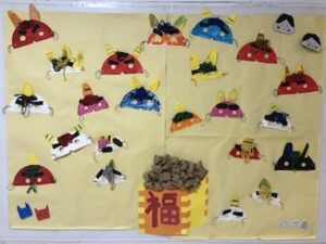 今月の壁面が完成しました!節分は、邪気を払って無病息災を祝う行事です。ふぁんふぁんのみんなも健康で幸せに暮らせますように。