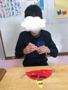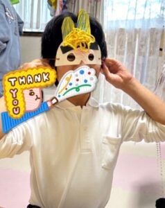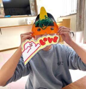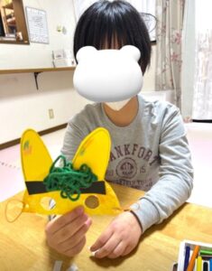 完成するとお面をつけて楽しんでいました!
