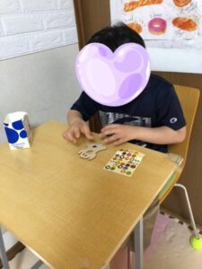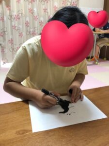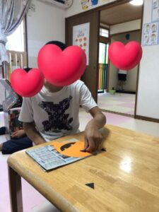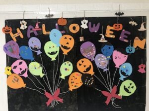 シールで顔を表現したり、画用紙を切って目や口を作ったり色々なハロウィンの仲間達が出来ました。