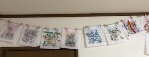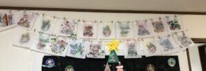 周りにはクリスマスベルや、雪の結晶を制作しました。
