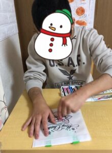 個人では一人ひとつ、クリスマスバックの色塗りを行いました。