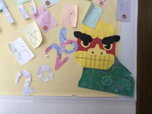 『あけましておめでとう』を書いてくれましたがなかなか大きな文字が書けなかったですが、みんな頑張って書いてくれました。